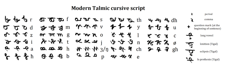 [[File:Talmic cursive script.png|thumbnail|Tigal script]] | [[File:Talmic cursive script.png|thumbnail|Tigal script|750px]] | ||