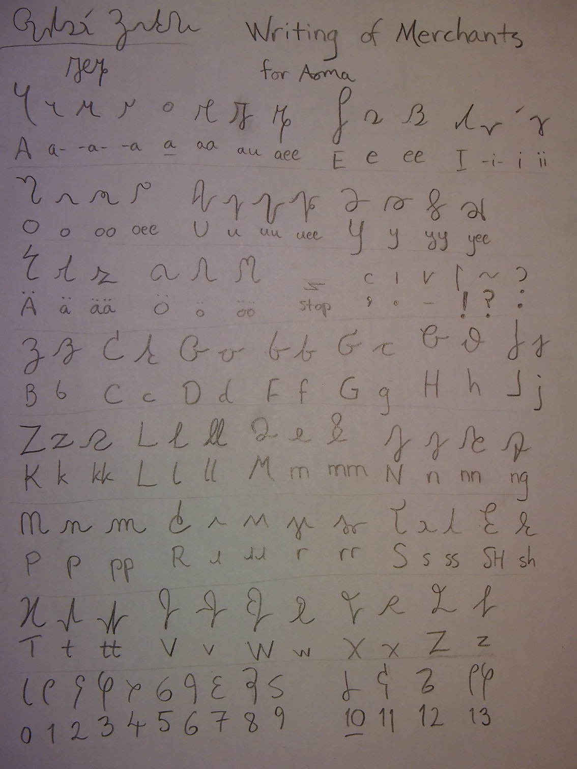 Actual: After Rinap I wanted something with fewer k-letters and difficult diphthongs, and I had already set my old script originally for Finnish as the script of this future language. This gave birth to a project randomly named Aoma - the story came later.