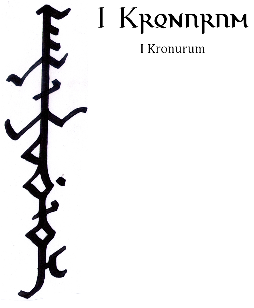 Randition of the name I Kronurum in one of the native orthographies, a gautification and a romanization