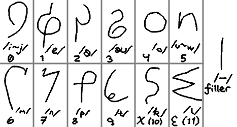 The yama-pali-auk script, and a brief summary what each of the characters can mean.