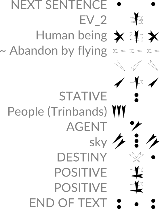 23:02, 1 November 2015 TCLFig8e.png (file) 81 KB The fifth line of 'The arrogant human', a short TCL story, in Common Triband Script (CTS) including English glosses. 1