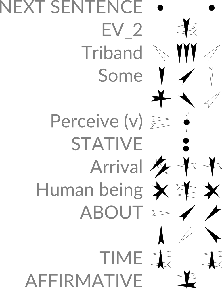 23:01, 1 November 2015 TCLFig8c.png (file) 145 KB The third line of 'The arrogant human', a short TCL story, in Common Triband Script (CTS) including English glosses. 1